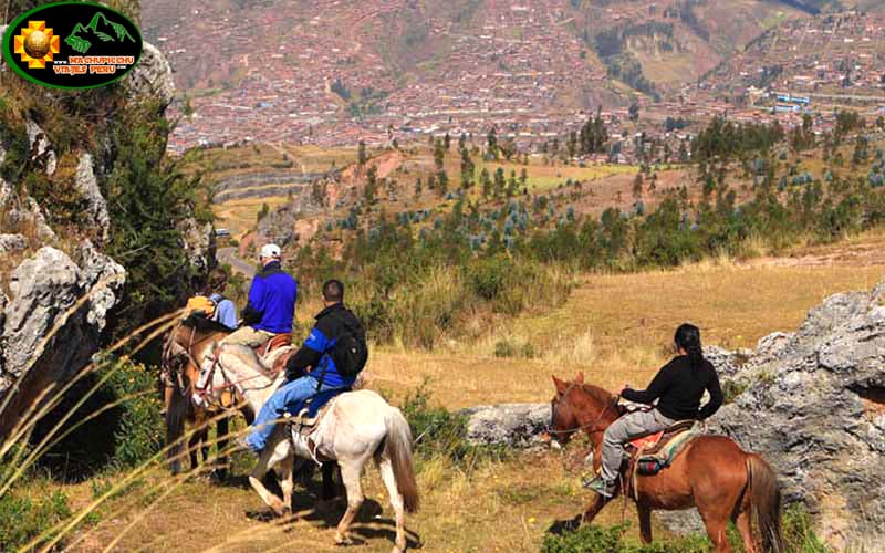 Nuestro tour a caballo, es un paseo agradable por algunos sitios arqueológicos en la parte alta del Cusco, es un tour poco convencional al aire libre, nos permite estar en contacto con la naturaleza montado en un caballo, disfrutaremos de una hermosa vista de la ciudad y sus alrededores, visitaremos el bosque de eucaliptos, el templo de la Luna y el balcón del diablo conocido también como el templo de arcoíris.